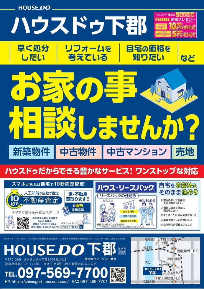 大分市内(一部地域を除く)大分合同新聞折込広告を発行を予定しております。
